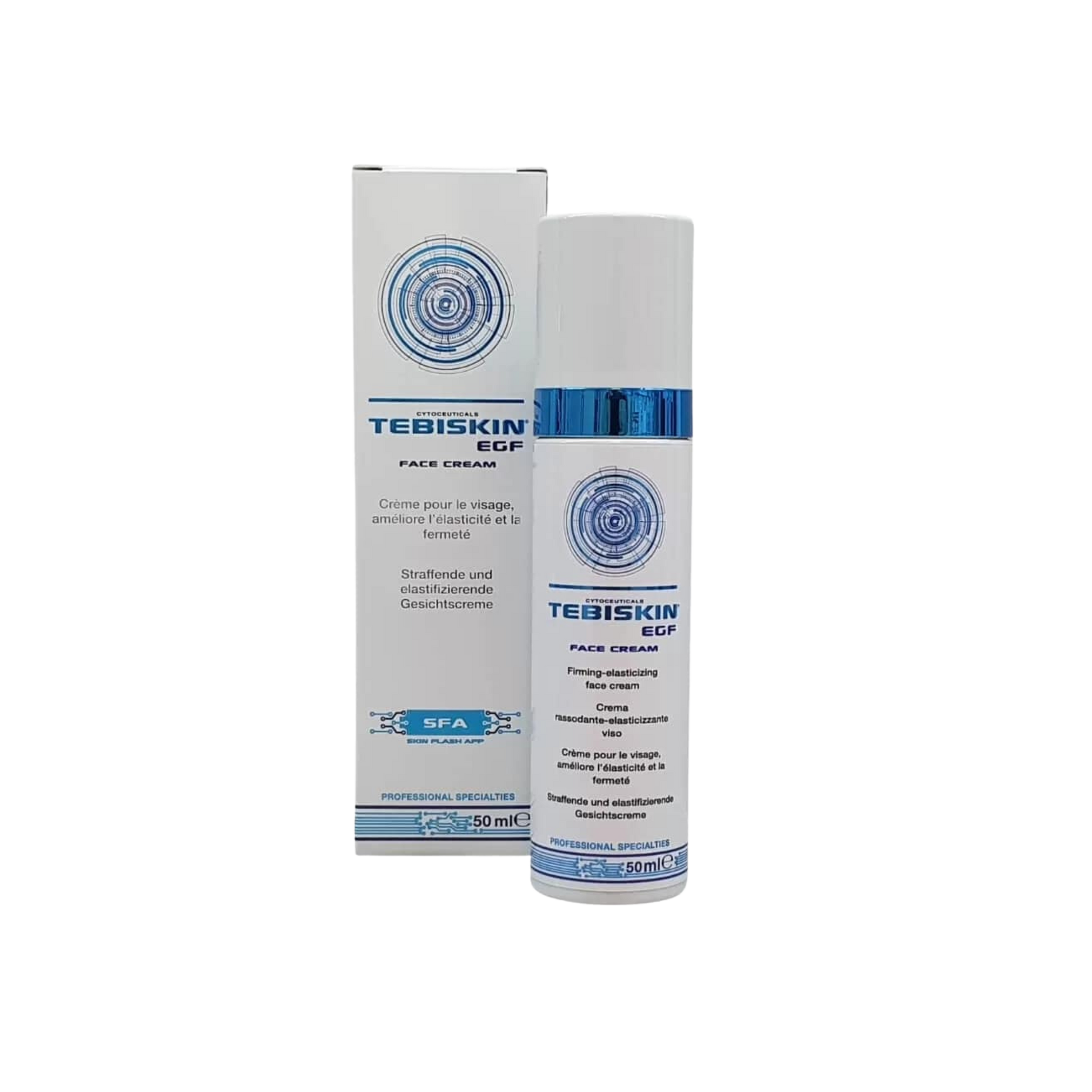 TEBISKIN® EGF veido kremas sukurtas specialiai biomechaniniams senėjimo procesams lėtinti, gerinant odos elastingumą, tonusą ir turgorą. Priemonė padeda atsistatyti odai po cheminio, fizikinio ar mechaninio odos vientisumo pažeidimo. Pasižymi drėkinančiu ir raminančiu poveikiu.