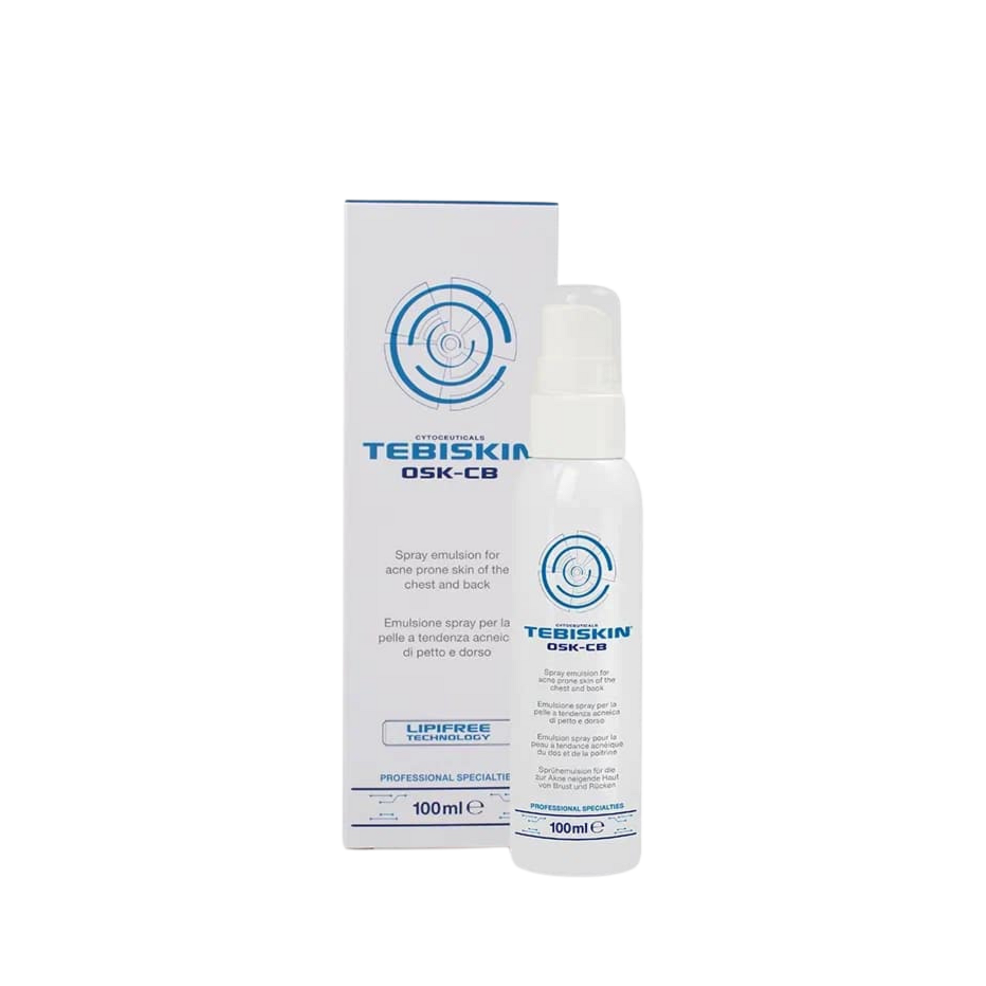 TEBISKIN®OSK-CB speciali purškiama emulsija rekomenduojama į aknę linkusiai krūtinės ir nugaros odai, ypač kai jai būdingos pigmentinės dėmės. Produktas greitai susigeria ir nepalieka jokių likučių. TEBISKIN® OSK-CB pasižymi sinergetišku trietilcitrato, etillinoleato, GT-peptido-10 ir salicilo rūgšties poveikiu. Trietilcitratas kartu su GTpeptidu-10 veiksmingai apsaugo odą.